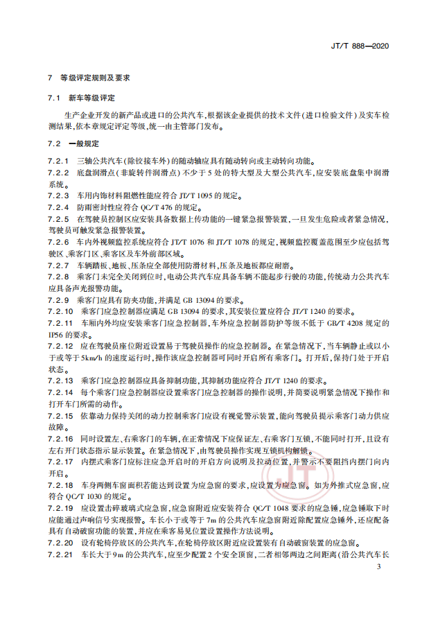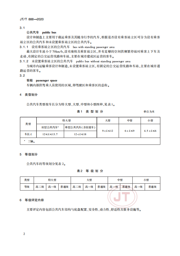中華人民共和國交通運輸行業(yè)標準《公共汽車類型劃分及等級評定》(以下簡稱:該標準)JT/T 888—2020(代替JT/T888—2014) 于2020年4月28日發(fā)布并于2020年7月1日實施。